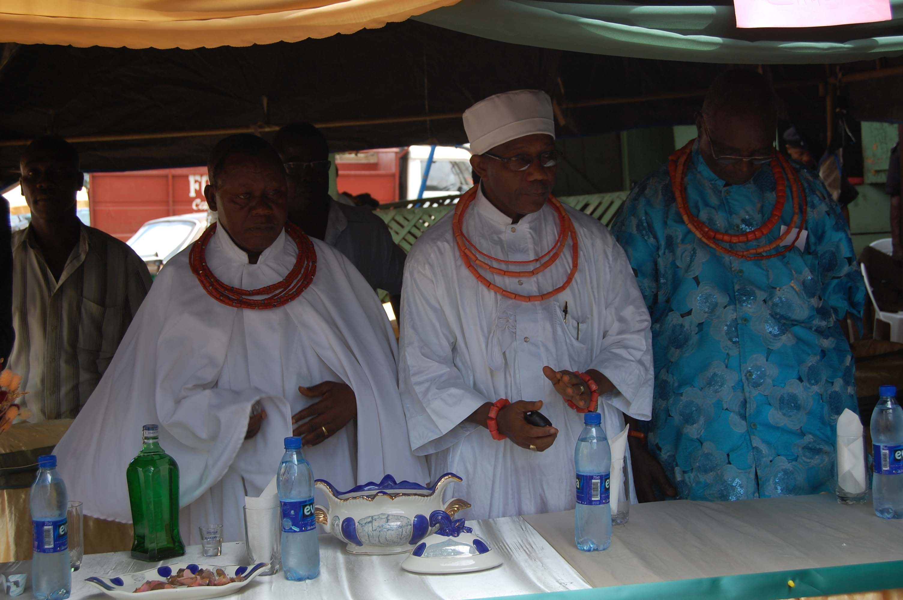 The Prime Minister of Benin Kingdom, Chief Nosakhare Isekhure. and fellow chiefs from the King of Benin, His Royal Highness Oba Erediawa |
